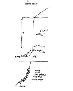 Below is an illustration of the Boly River Float set up with a chubber-style shotting arrangement โ ideal for presenting bait naturally and holding the line steady in heavy flow.