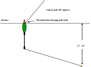 Surface floats are in-line, with the line threaded through the body via a fine needle β this prevents tangles when slapping or laying out the rig.